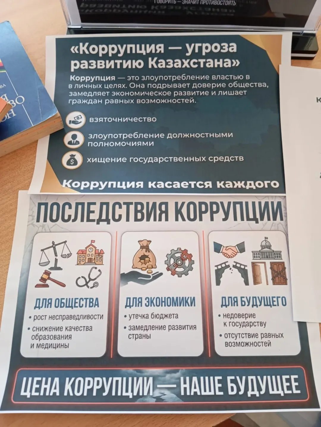 В ходе мероприятия участникам была представлена наглядная информационная выставка, раскрывающая понятие коррупции, её основные проявления и негативные последствия для общества, экономики и будущего страны. Особое внимание было уделено формированию антикоррупционного сознания, роли гражданской ответственности и недопустимости равнодушия как фактора, способствующего распространению коррупционных проявлений. Встреча прошла в формате живого диалога с обсуждением актуальных правовых вопросов.